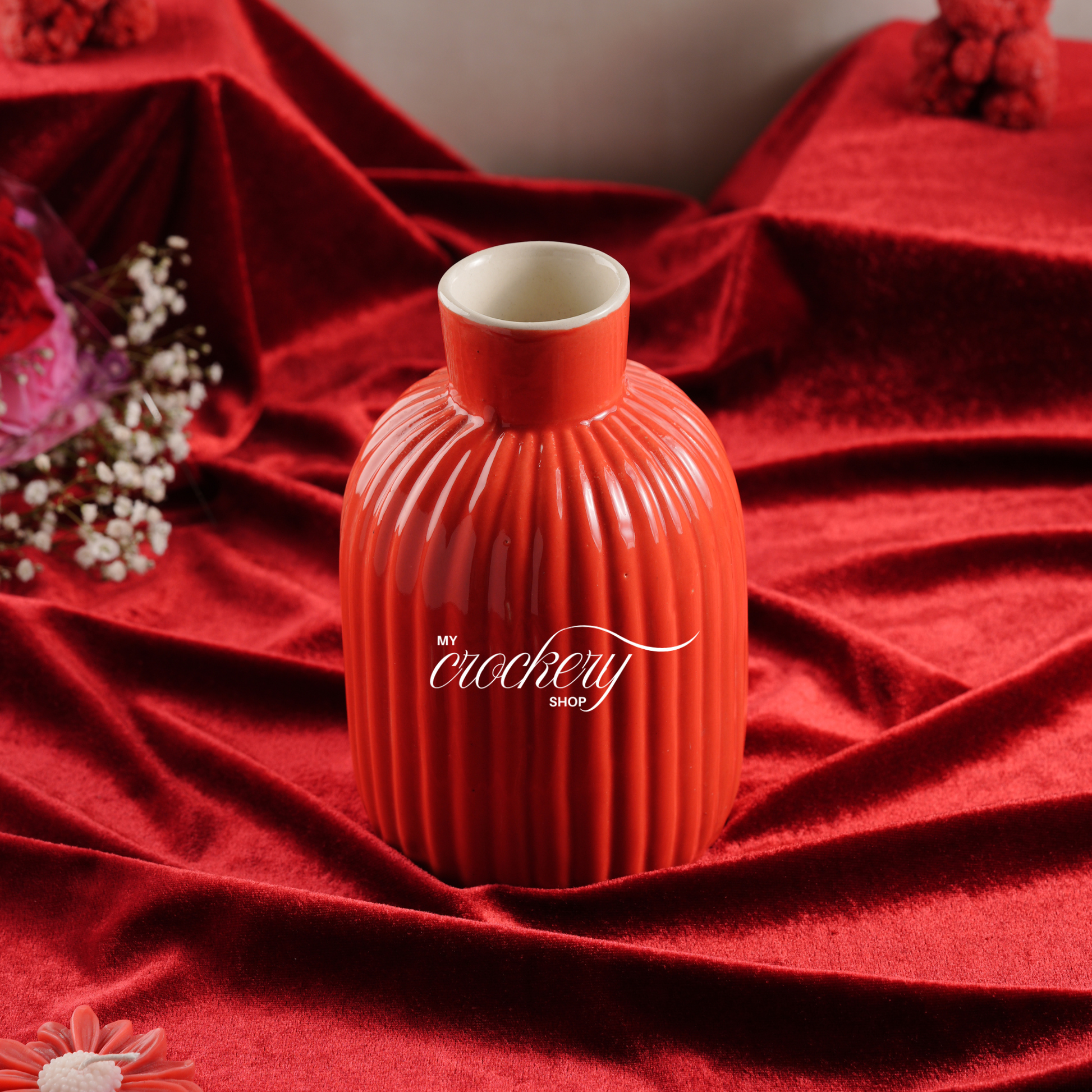 My Crockery Shop Minimal Ribbed Ceramic Flower Vase